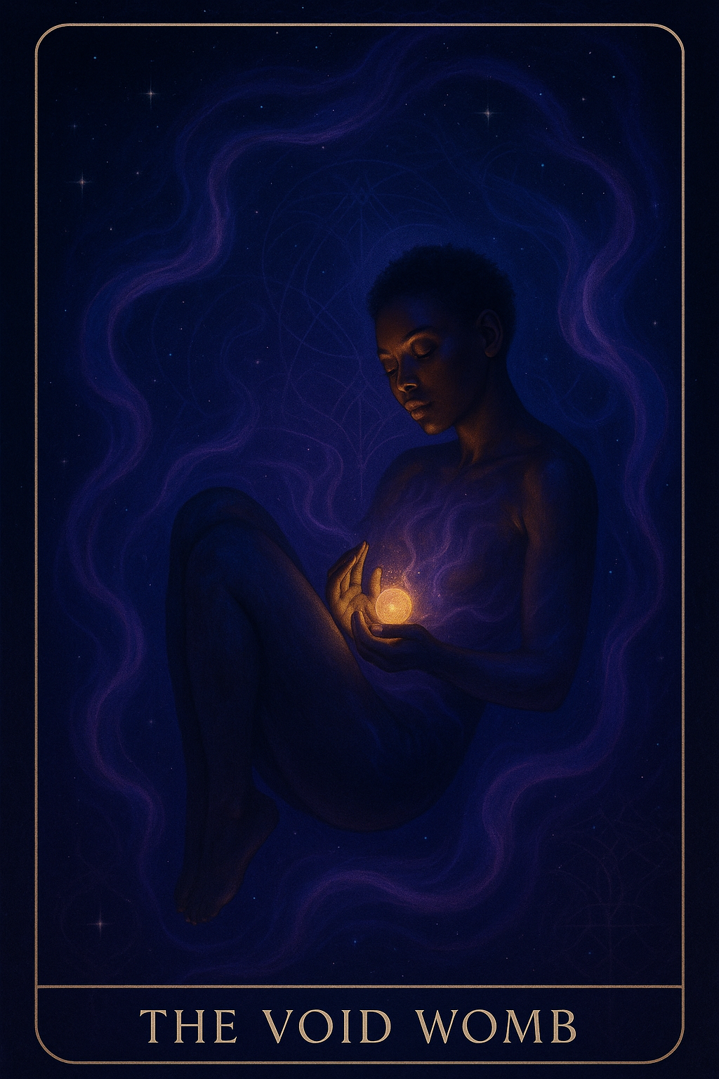 The Void Womb appears when your soul has completed a major arc, but the next path has not yet been written. You are being held in pure potential. It is uncomfortable, quiet, and rich with unseen movement. You may feel still, dreamless, unmotivated, unclear. Do not force clarity. You are in sacred incubation.
